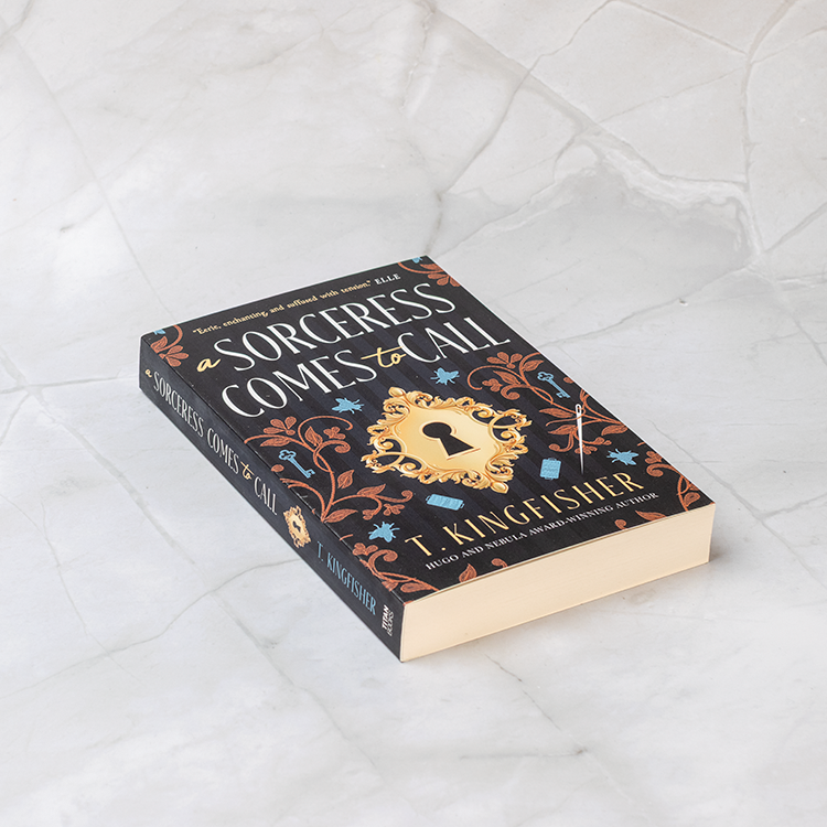 A Sorceress Comes to Call er T. Kingfishers dystre og gripende nytolkning av Brødrene Grimms Gåsepiken, der hemmeligheter, mord og forbudt magi lurer bak høflige fasader. Cordelia vokser opp fanget av sin mors fryktinngytende kontroll – en mor som ikke bare er streng, men en ekte trollkvinne – og når de flykter etter et mistenkelig dødsfall, settes alles liv i fare i et avsidesliggende herskapshus der bare mot og medmenneskelighet kan bryte trolldommen.