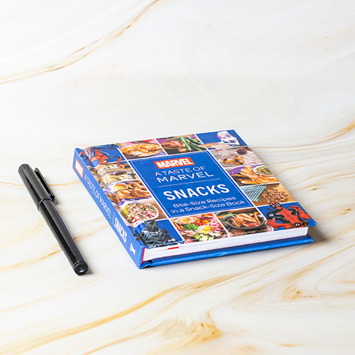 Et kompakt og lekkert hefte med de beste snack-oppskriftene fra Marvels kokebøker – perfekt for filmkvelder, bursdager og superhelt-maraton.
