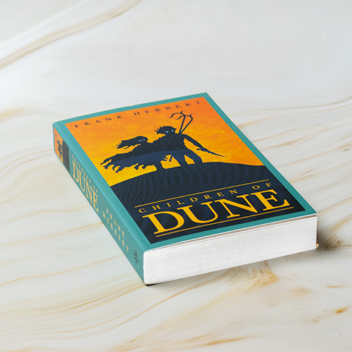 Arrakis er blitt grønn – men forvandlingen truer sandormene og økonomien. Tvillingene Leto og Ghanima må navigere fanatisme, profetier og politisk uro for å redde både planeten og arven etter Paul. Både intimt og storslått – en nøkkelbok i Dune-syklusen. «An astonishing science fiction phenomenon.» – Washington Post
