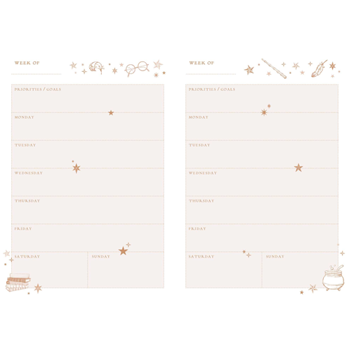 Et eksklusivt Traveler’s Notebook-sett inspirert av samholdet mellom Harry, Ron og Hermine. Perfekt for deg som liker å planlegge, skrive og samle minner på en stilfull og fleksibel måte.