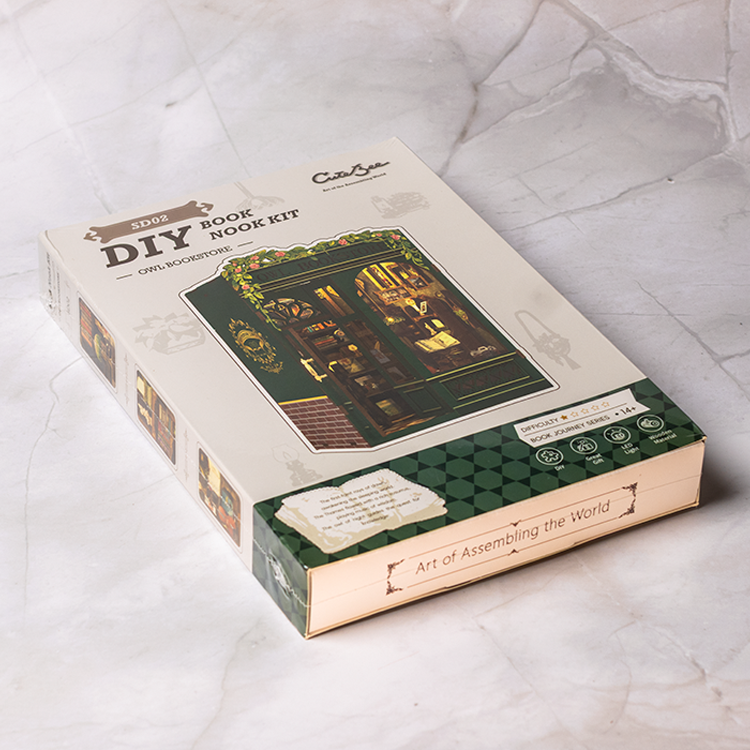 Dette detaljerte byggesettet fra CuteBee forvandler bokhyllen din til en miniatyrverden av kreativitet, håndverk og fortellerkunst.