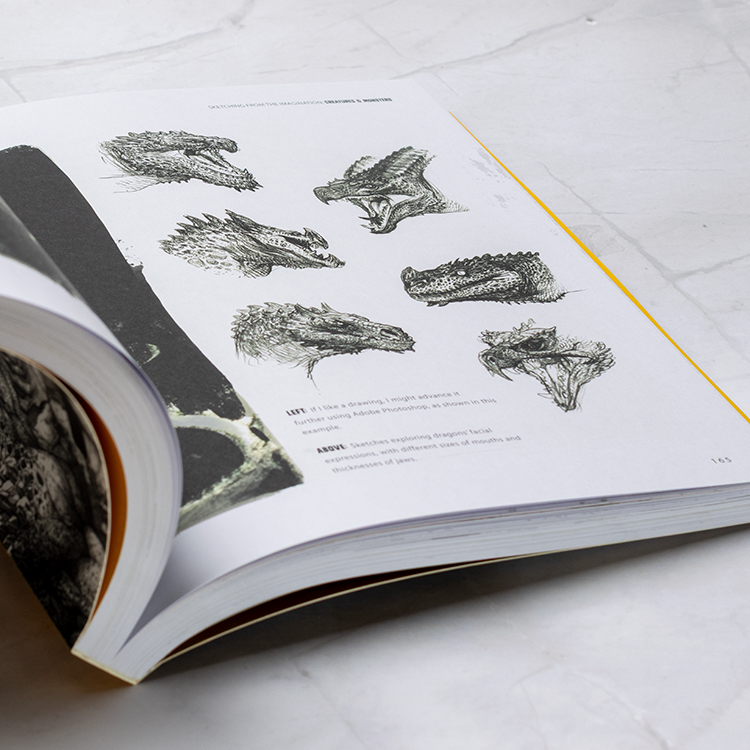 Sketching with Imagination: Creatures & Monsters inviterer deg inn i en verden av magiske beist, mutanter og fremmede vesener, skapt av 50 kunstnere innen creature design. Hver side byr på nye skapninger, teknikker og personlige refleksjoner rundt hvordan monstre blir til – både visuelt og konseptuelt.